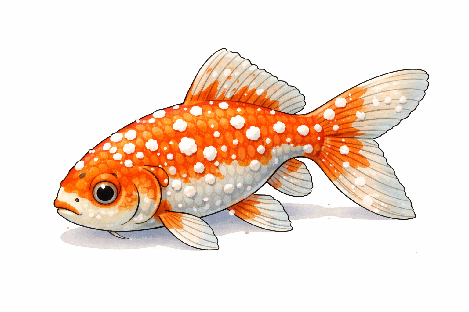 もう1匹の和金もヒレに数個、白い点が出てきた。