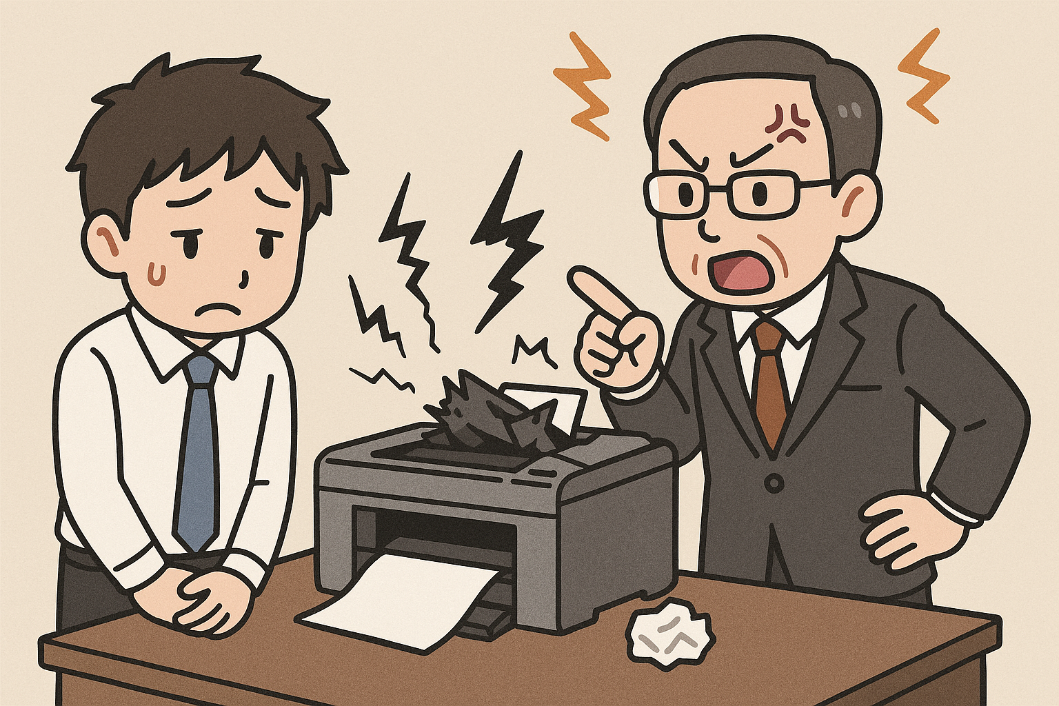 「あー、またか。仕方ない、隣のプリンターに切り替えよう」